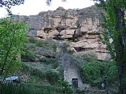 La parte principal de Rivert, bajo el acantilado donde antaño estaba el castillo, está protegido por un dosel de roca rojiza con numerosas aberturas provocadas por la erosión y aprovechadas por el ser humano desde tiempos muy antiguos. Hay restos de paredes, como también se da en Gurp, cerrando algunas de estas aberturas, formando corrales y, más antiguamente, habitáculos que evidencian la existencia de un antiguo poblamiento de origen troglodítico.