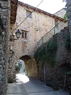 El pueblo, que debía estar aislado, de marcado carácter medieval, desciende de la roca que le hace de dosel, lo que hace que, pese a la modernización de sus casas y sus calles, no haya perdido del todo el aire de antigüedad que acompaña el visitante.
