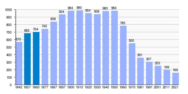 | Gráfica de evolución demográfica de Roales de Campos[3] entre 1842 y 2021 |