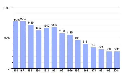 | Gráfica de evolución demográfica de Robella entre 1861 y 2001 |
