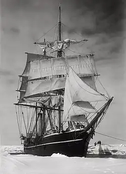 - ↑ Shackleton informó de sus planes a la Royal Geographical Society el 7 de febrero de 1907. Scott había pedido al secretario Keltie de la Sociedad que mantuviera en secreto sus intenciones.[41]