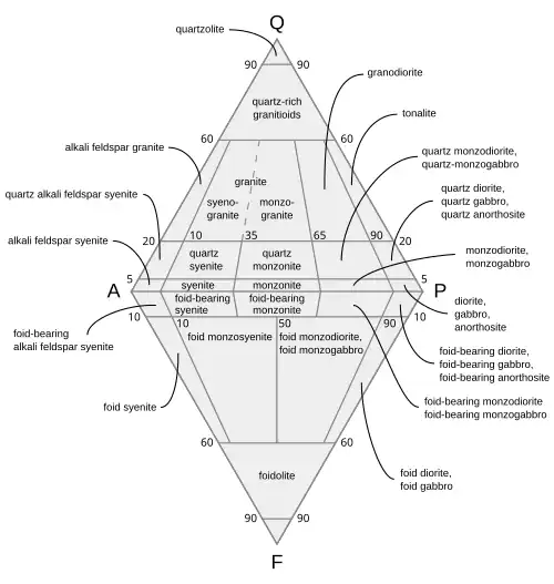 El diagrama QAPF es un doble diagrama triangular utilizado para clasificar rocas ígneas según su composición mineralógica. El acrónimo QAPF, corresponde a "cuarzo (en inglés: Quartz), feldespato alcalino (en inglés: Alkali feldspar), Plagioclasa, Feldespatoide", que son los grupos minerales usados para la clasificación en el diagrama QAPF. Los porcentajes de Q, A, P y F están normalizados (recalculados para que su suma sea 100 %).