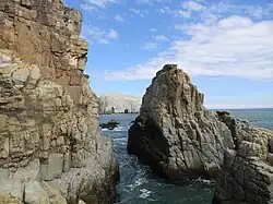 Rocas de Constitución, con la Piedra de la Iglesia al fondo. | ||