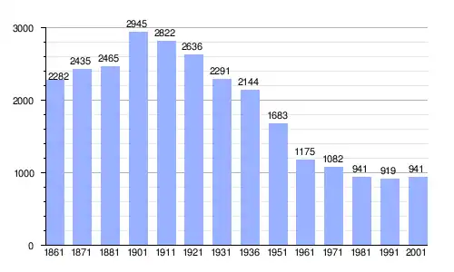| Gráfica de evolución demográfica de Rocca d'Arazzo entre 1861 y 2001 |