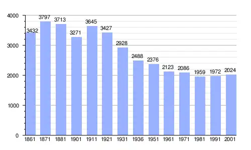 | Gráfica de evolución demográfica de Roccaforte Mondovì entre 1861 y 2001 |