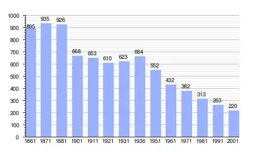 | Gráfica de evolución demográfica de Rocchetta Ligure entre 1861 y 2001 |