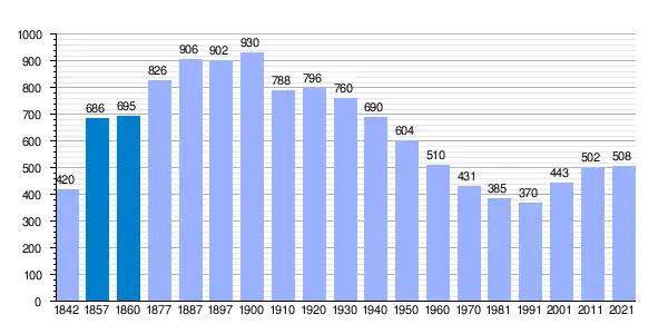 | Gráfica de evolución demográfica de Rodoñá[4] entre 1842 y 2021 |