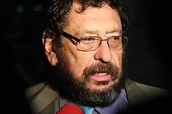 ![]() Solís Zelaya dando declaraciones a medios de comunicación. | ||