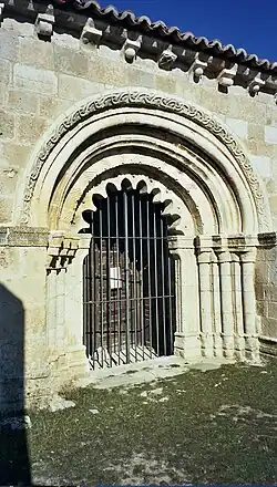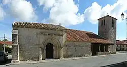 La iglesia de San Bartolomé, reedificada en el siglo XVI, conserva su portada románica de tres arquivoltas y chambrana con puntas de diamante.[15]