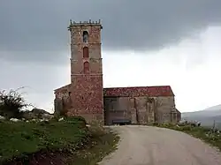 La iglesia de San Pedro, del siglo XII, es un sencillo templo con espadaña a los pies. La portada, resguardada por un pequeño porche, contiene cuatro columnas con capiteles labrados.[14]