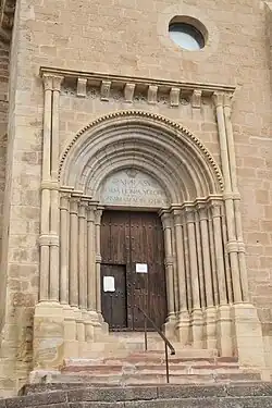 La iglesia de San Pedro tiene mezcla diversos estilos debido a las sucesivas restauraciones y ampliaciones. La nave y la portada son del siglo XII, las naves laterales los ábsides del siglo XVI y la torre del siglo XVII. Su portada consta de varias arquivoltas decoradas con motivos vegetales y geométricos con decoración de entrelazo en zigzar, de influencia mudéjar.
