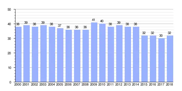 | Gráfica de evolución demográfica de Romarís entre 2000 y 2018 |