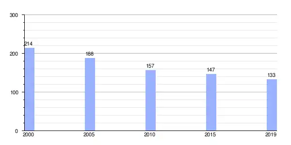 | Gráfica de evolución demográfica de Romariz entre 2000 y 2019 |