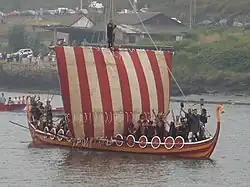 Réplica de un barco vikingo del siglo XI, en la ría. -
