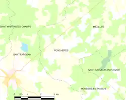 - Situación de Ronchères en un mapa de Francia y de comunas limítrofes (enlace roto disponible en Internet Archive; véase el historial, la primera versión y la última). (en francés)