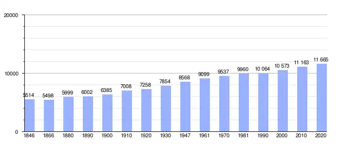 Todos los datos históricos relativos al actual municipio, el siguiente gráfico refleja su evolución demográfica, incluyendo municipios después de efectuada la fusión el 1 de enero de 1977.