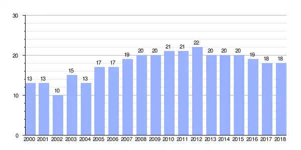 | Gráfica de evolución demográfica de Roque entre 2000 y 2018 |