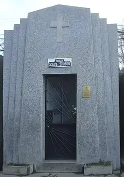 Sus restos están enterrados en el cementerio municipal de Punta Arenas, en un mausoleo compartido por la familia Scarpa Straboni.