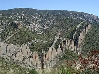 La formación geológica consiste en una doble línea de estratos verticales de piedra, fruto de un pliegue y posterior erosión de una capa de roca caliza, que están ubicados en la desembocadura del río Guart en el Noguera Ribagorzana, en la comarca de Ribagorza y en plena sierra del Montsec, un espacio natural protegido del Prepirineo central. La desembocadura del Guart forma hoy parte del gran pantano de Canelles, cuya construcción propició la despoblación de la cercana aldea de Finestras en 1960.