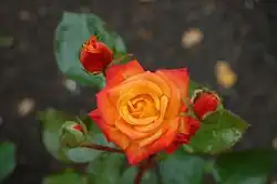 Rosa 'Mambo' rosa híbrido con ascendentes parentales de 'Tropicana' x 'Zorina'. | ||