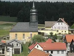 Se encuentra ubicado a poca distancia al norte de la frontera con los estados de Sajonia y Baviera.