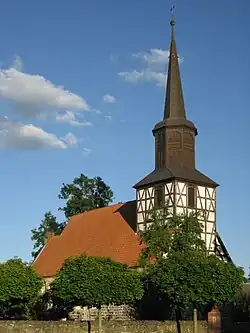 Se encuentra ubicado a poca distancia al norte de la frontera con el estado de Brandeburgo.