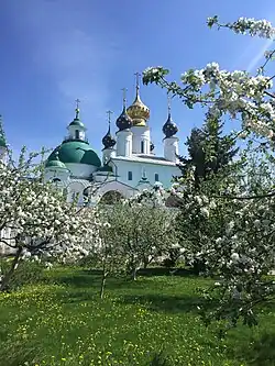 El Kremlin está al lado de dos grandes monasterios, ambos al lado del Lago Nero. A la derecha del Kremlin está el monasterio de Abrán, fundado en el siglo XI, y uno de lo más viejo de Rusia. Su catedral, comisionada por Iván el Terrible en 1553 para conmemorar la conquista de Kazán, inspiró numerosas iglesias en la región, en particular en Yaroslavl. El monasterio Yákovlevsky, situado a la izquierda del Kremlin, en las afueras de la ciudad, ha sido venerado como el lugar sagrado de San Dmitry de Rostov. La mayor parte de las estructuras de monasterio fueron construidas a finales del siglo XVIII y a principios del siglo XIX en el estilo neoclásico fino. Hay también dos iglesias de siglo XVII, dedicadas a la Concepción de Santa Ana y a la Transfiguración de Nuestro Salvador. A diferencia de la mayor parte de otras iglesias en la ciudad, el monasterio y unas casas de un seminario teológico pertenecen a la Iglesia ortodoxa rusa.