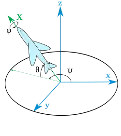 Las rotaciones se aplican con el orden siguiente: rumbo (), elevación () y balanceo (). En estas condiciones, la orientación del eje longitudinal de la aeronave (ángulo en el plano horizontal) será igual a la variación de rumbo aplicada, y su inclinación coincidirá con el cambio de elevación introducido.