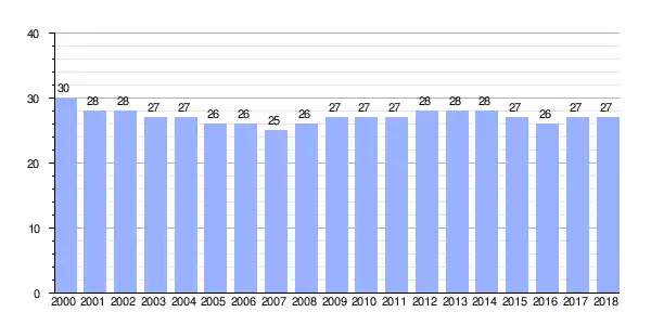 | • Total | 27 hab. | |