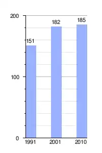 | Gráfica de evolución demográfica de Roversi entre 1991 y 2010 |