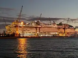 - ↑ https://www.schiffe-und-kreuzfahrten.de/news/legend-of-the-seas-in-bau-bei-meyer-turku-dock-wird-erstmals-geflutet/370472/