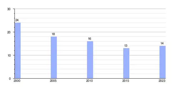 | Gráfica de evolución demográfica de Rozadas entre 2000 y 2023 |