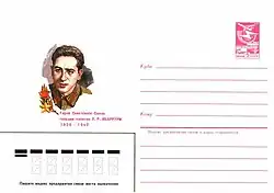 - La Unión Soviética publicó una colección de tarjetas postales con personas galardonadas con el título de Héroes de la Unión Soviética, en una de las cuales, figura Rubén Ibárruri (derecha).