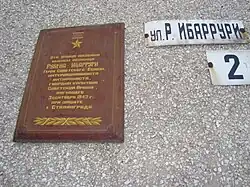 - En Moscú, en la escuela número 19 donde se graduó, hay una placa conmemorativa desde 2011 en su honor junto a otros héroes que pasaron por la escuela.[28][29]