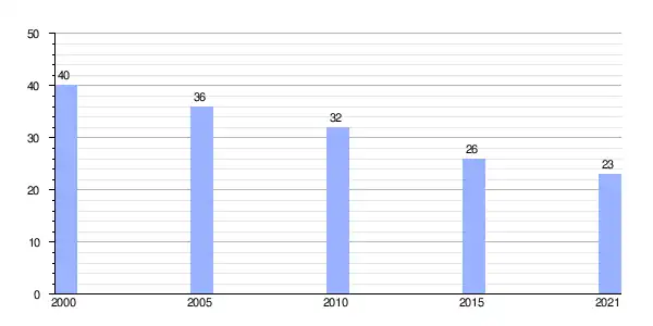 | Gráfica de evolución demográfica de Rubín entre 2000 y 2021 |