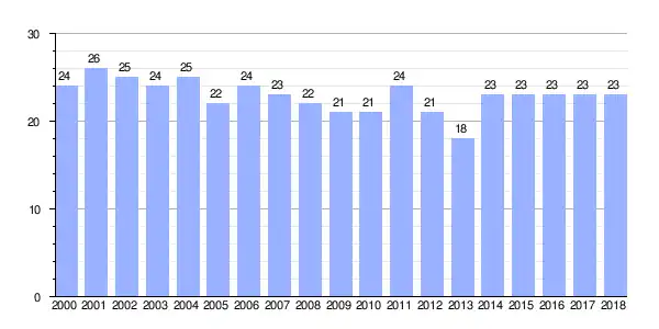 | Gráfica de evolución demográfica de Rubial entre 2000 y 2018 |