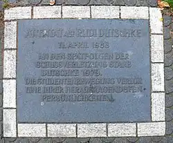 - ↑ Stapel, Helmut (27 de abril de 2021). «Rudi Dutschke: Schlüsselfigur der Studentenbewegung». GEO (en alemán). Archivado desde el original el 11 de mayo de 2021. Consultado el 15 de mayo de 2024.