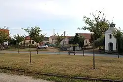 Se encuentra ubicada al suroeste de la región, cerca de la orilla del río Dyje —un afluente del río Morava que, a su vez, lo es del Danubio—, de la frontera con Austria y la región de Vysočina, y a poca distancia al suroeste de la ciudad de Brno.[1]