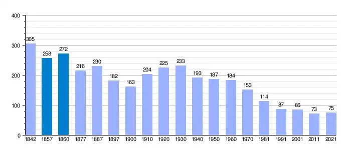 | Gráfica de evolución demográfica de Ruesca[3] entre 1842 y 2021 |