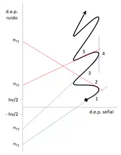 No obstante, para explicar los efectos que induce, hay que asignarle una densidad espectral de potencia de por cada grado de libertad ( = dimensiones del espacio de fase) asociado a la señal que se esté midiendo. Así, para una señal monomodo en una única polarización, k = 2 fases (I, Q):