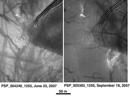 - ↑ http://www.space.com/21539-mars-gullies-dry-ice-sleds.html