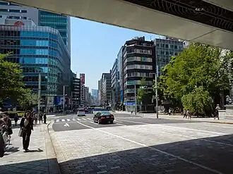 | Punto de origen de la ruta en Nihonbashi, Chūō, Tokio. Las rutas 1, 15 y 20 se superponen y las rutas 4, 6, 14 y 17 también se superponen, en su origen. | ||||||