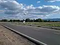 Acceso a Olta (izquierda de la imagen) por la 79; en el fondo se distingue la Sierra de los Llanos. -