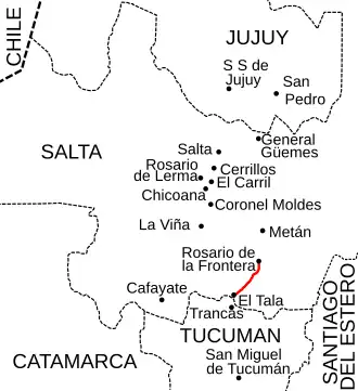 - Departamento de Rosario de la Frontera: Rosario de la Frontera (km 48).