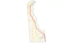 ![]() Mapa de la Ruta de Delaware 1 | |||||||||