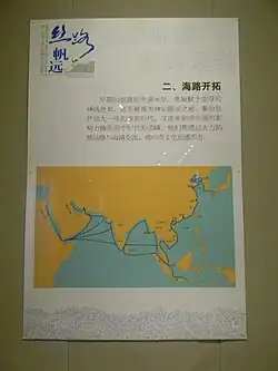 La Ruta marítima de la seda se refiere al tramo marítimo de la histórica Ruta de la seda que conectaba China, el sudeste asiático, el subcontinente indio, la península arábiga, Somalia, Egipto y Europa. Floreció entre el siglo II a. C. y el siglo XV d. C.[1] A pesar de su asociación con China en los últimos siglos, la ruta marítima de la seda fue establecida y operada principalmente por marineros austronesios en el sudeste asiático, comerciantes tamiles en la India y el sudeste asiático, comerciantes grecorromanos en África Oriental, India, Ceilán e Indochina,[2] y por comerciantes persas y árabes en el mar Arábigo y más allá.[3]