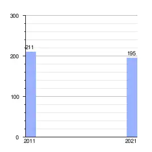 | Gráfica de evolución demográfica de Ruvina, Ruivós e Vale das Éguas entre 2011 y 2021 |