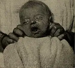 - Rhagades, cicatrices lineales en los ángulos de la boca y la nariz son el resultado de una infección bacteriana de las lesiones cutáneas.