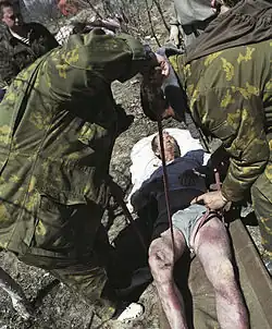- ↑ a b c d e Castañer Moreno J., "Síndrome de aplastamiento: consideraciones clínicas y aseguramiento médico", Archivado el 18 de septiembre de 2015 en Wayback Machine. Rev Cubana Med Mil 1995 (enero-junio). Consultado el 28 de septiembre de 2015.
