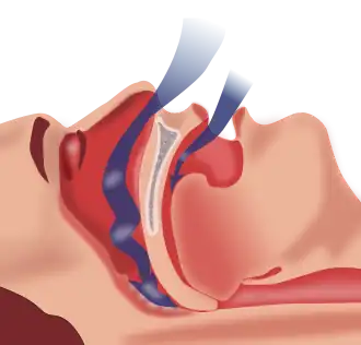 • Aparatos de presión positiva continua en la vía aérea (CPAP): consiste en una máquina que expulsa aire a presión y que está conectada a un tubo con una mascarilla facial. Utiliza la presión del aire para empujar la lengua hacia adelante y abrir así la vía. Según los especialistas, esta mascarilla suele tener un efecto rápido haciendo desaparecer los ronquidos nocturnos y la somnolencia durante el día. Este tratamiento no suele tener efectos secundarios graves y en el caso de que éstos aparezcan son transitorios y desaparecen tras las primeras semanas.